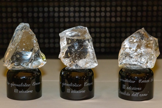 Durante la cerimonia di premiazione, tenutasi come di consueto nella splendida cornice di Cà del Bosco a Erbusco, i vincitori hanno ricevuto il tradizionale cotisso in vetro riciclato, realizzato dalla fonderia Effetre di Murano: un simbolo che rappresenta l’artigianalità e la circolarità del materiale vetro, emblema della missione di CoReVe.